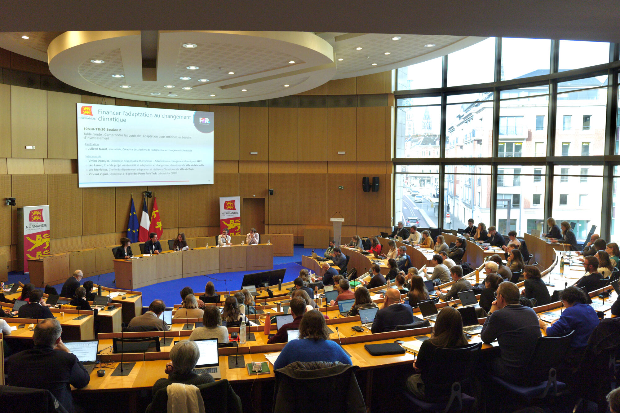Participation was strongly anchored at the territorial level, with a significant representation of local and regional authorities (particularly from Normandy), including regional administrations, metropolitan authorities, municipalities, inter-municipal structures and departmental actors. This territorial core was complemented by participants from other French regions (Île-de-France, Nouvelle-Aquitaine, Hauts-de-France, Auvergne-Rhône-Alpes, Provence-Alpes-Côte d’Azur, Grand Est and overseas territories), ensuring broader geographical diversity.  Beyond exchanging experiences, it created a shared space to confront a common reality: adaptation is no longer optional – it is an immediate investment priority.