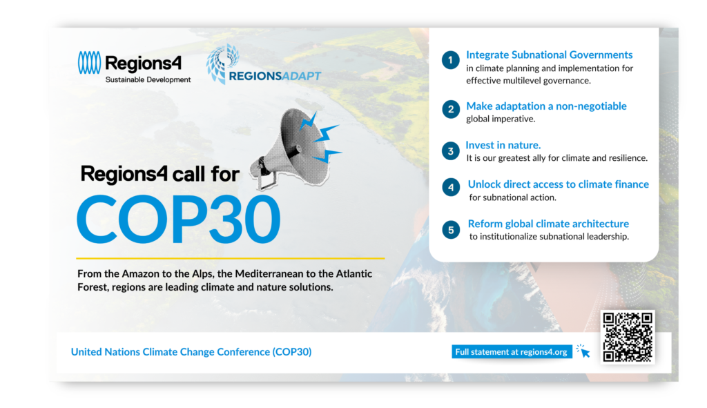 At COP30 in Belém, Regions4 will present a series of key launches designed to strengthen resilience where it matters most: